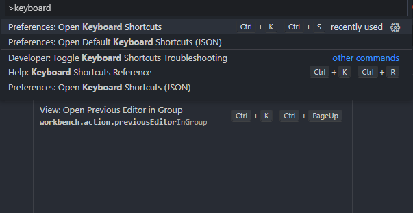 1. Ctrl+Shift+P 누르고 'Preferences: Open Keyboard Shortcuts' 열기