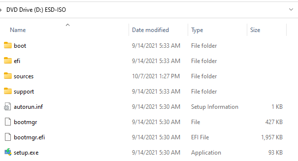 ISO파일 열고 setup.exe 실행으로 윈도우 설치하면 끝