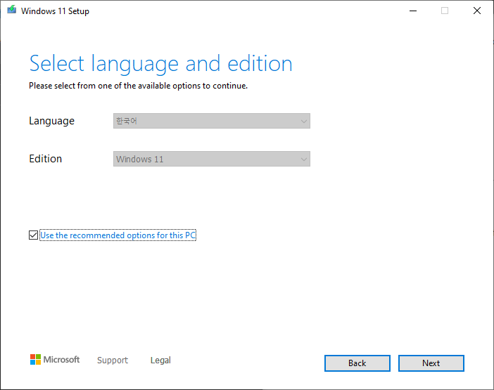 윈도우11 다운로드 페이지에서 미디어생성 파일 다운로드