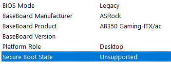 아무리 이것저것 시도해도 내 컴퓨터에 안전부팅 모드는 활성화 되지 않았다.
